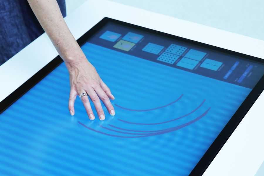 Die Ausstellung von focusTerra, ETH Zürich lädt mit großformatigen, farbenfrohen Illustrationen und vielen Hands-On-Exponaten ein, die Bedeutung, Schönheit und Kraft von Wellen spielerisch mit allen Sinnen zu entdecken. Besucher*innen hören den Wellen zu, spüren ihre Energie und experimentieren mit ihnen. Sie können wie ein Delfin, mit dem „Wellentisch“ experimentieren und herausfinden, wie sich ganz unterschiedliche Anwendungen die gleichen Welleneigenschaften zunutze machen. So haben die Vermessung der Dicke eines Gletschers und die Ultraschalluntersuchung eines ungeborenen Babys mehr gemeinsam als auf den ersten Blick ersichtlich ist. Und wie wir mit unseren Ohren ermitteln, woher ein Geräusch kommt, funktioniert ähnlich wie die Standortbestimmung mittels GPS.
